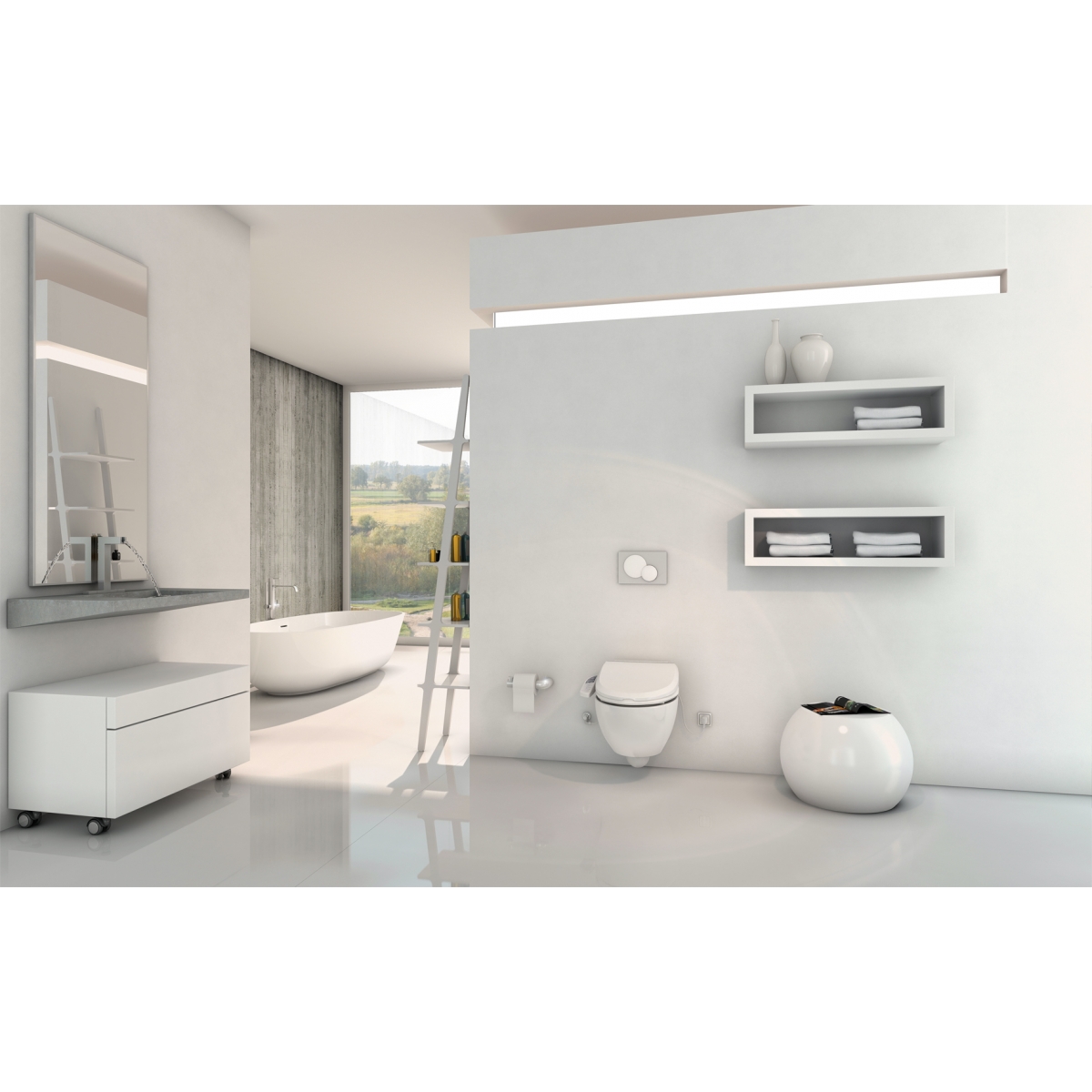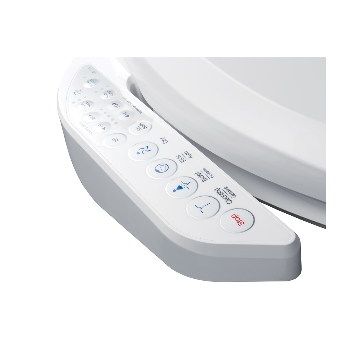 Přídavný elektronický bidet s postranním ovládacím panelem, vč. funkce sušení.